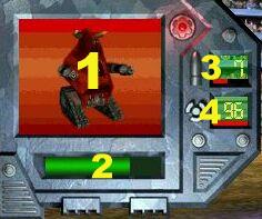 During the match you can track each of the robots’ vital statistics by reading their "Robot Status" information on the main view screen. The display on the left side of the screen is for robot #1; the right side display is for robot#2. The following information will be present: