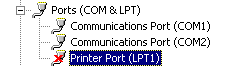 The LPT Port can be deactivated and aktivated again in the Device Manager ( here for Windows 2000 ) :