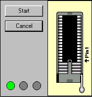 For the selected device an exact position of the device pins in relationship to the GALEP socket is displayed by the software within the action window, which is shown for <program>, <verify>, <blank check>, <read> and <erase>.
