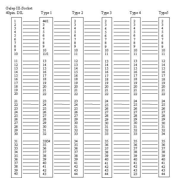 Semiconductor manufacturers have not able to agree on a standardized pattern for the conversion of 40-pin DIL packages into 44-pin PLCC packages. Therefore, as a rule, a special adapter is required for each device family.