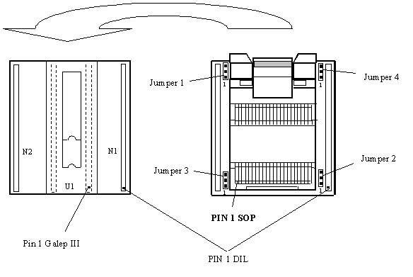 Two of the more common connecting-types for flash-memory are supported with this adapter. The appropriate connection type is set with four Jumpers. The list below gives some examples of certain connection-types and their appropriate jumper-positions.