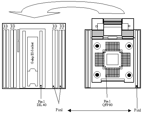 Adapter for converting from a 40-pin DIL package to an 80-pin QFP