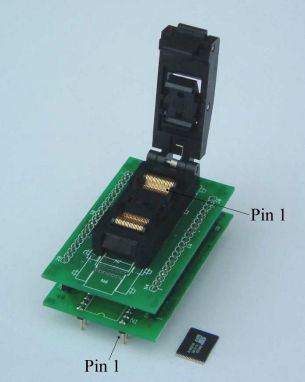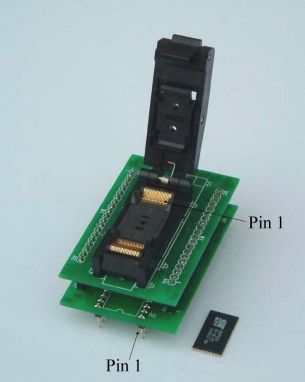 be used with most other programmers. - The adapter 210860 is supplied with a socket for the long package version (10 x 20 mm). - The adapter 210861 is supplied with a socket for the short package version (10 x 14 mm). This Adapter is required to program all the devices, which come in the TSOP-40 package. For the different devices in the DIL-40 package an appropriate pin configuration at the GALEP socket will be selected. The same pin configuration is used for the TSOP-40 devices, because the adapter only converts the pinout by a standard rule: Pin X of the DIL-40 pinout is connected to pin (X+10) of the TSOP-40 pinout (1-11...30-40, 31-1...40-10). |