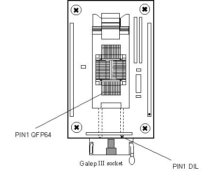 Please follow the diagram below to connect the adapter onto the GALEP in the right orientation, and to correctly place the programmable device into the adapter.