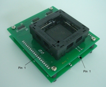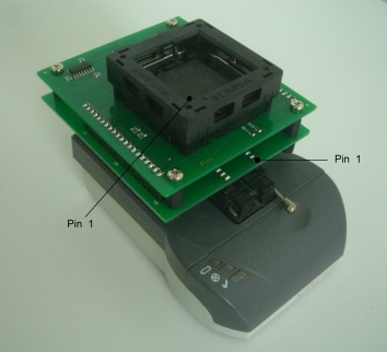 Adapter for converting from a 40-pin DIL package to a 320-pin BGA package for MCU MB91F469G from Fujitsu. Please follow the diagram below to connect the adapter onto the GALEP in the right orientation, and to correctly place the programmable device into the adapter. |