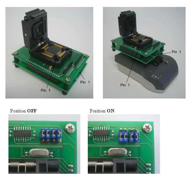 Please follow the pictures below to connect the adapter onto the GALEP in the right orientation, and to correctly place the programmable device into the adapter.