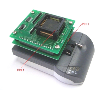 Please follow the pictures below to connect the adapter onto the GALEP in the right orientation, and to correctly place the programmable device into the adapter.