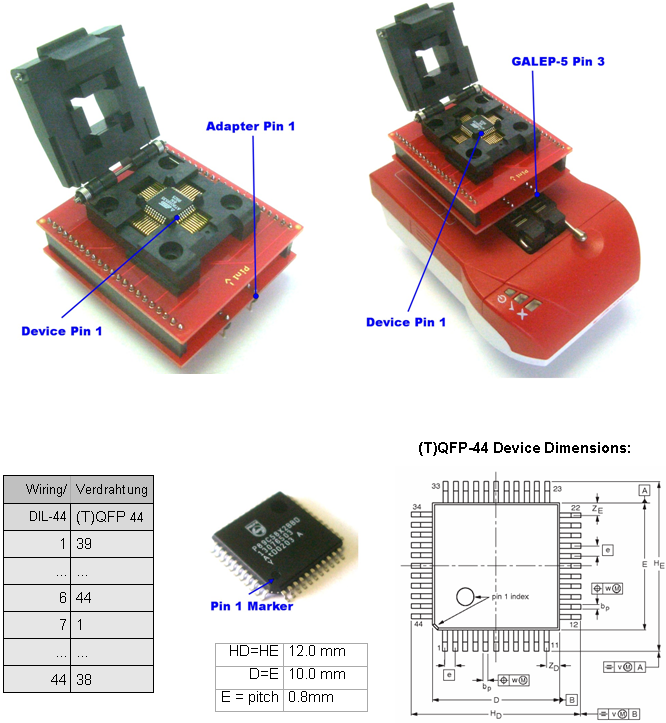 Please follow the pictures below to connect the adapter onto the GALEP in the right orientation, and to correctly place the programmable device into the adapter.