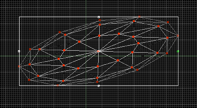 Wird das Werkzeug im Vertex Mode aktiviert, erscheint eine Bounding Box um die angewählten Vertices im 2D Fenster. Die vier Ecken der Box können am schmalen Punkt der Ecke beliebig bewegt werden. Auf diese Weise können die Vertices verzerrt werden, wie die Kugel im obigen Bild, die zu einem Ellipsoiden wurde. Das Werkzeug kann mit [Esc] beendet werden.