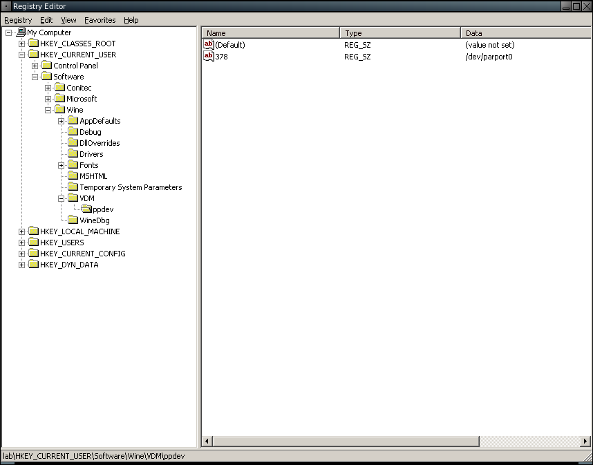 HKEY_CURRENT_USER\Software\Wine\VDM\ppdev\378